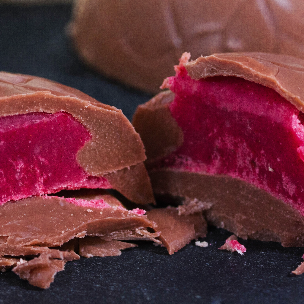 ✅ 8 x Milk Chocolate Raspberry Filled Egg halves